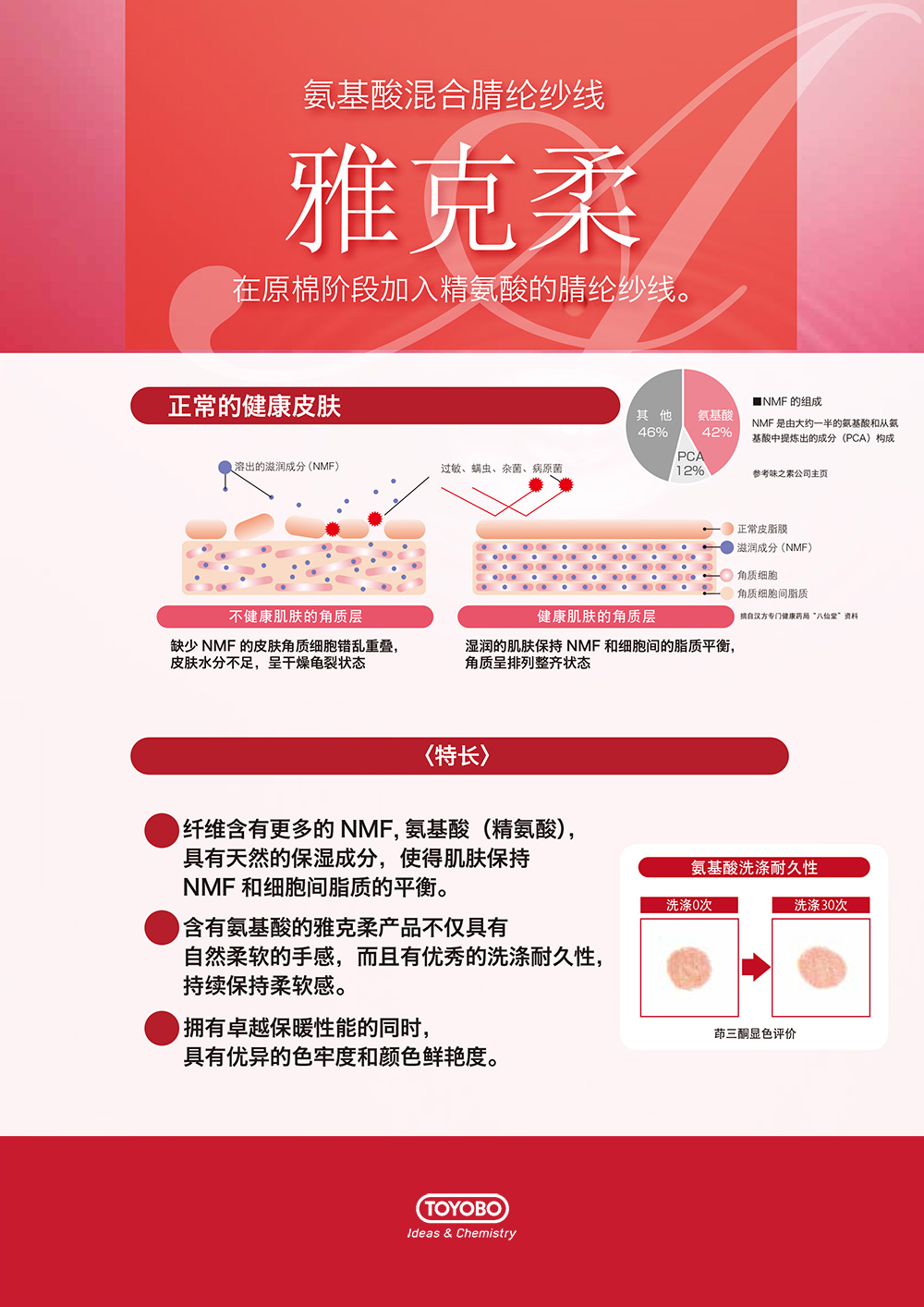 東洋紡作為丙烯材料的領(lǐng)導(dǎo)者,功能性腈綸紗線一直處在業(yè)界領(lǐng)先地位,多種多樣的超細(xì)和功能性纖維可以組合出上百個(gè)品種。滿足您在功能和成本的選擇,兼顧手感與抗起球的平衡。與您一同創(chuàng)意更合適的產(chǎn)品組合,為您品牌發(fā)展助力!